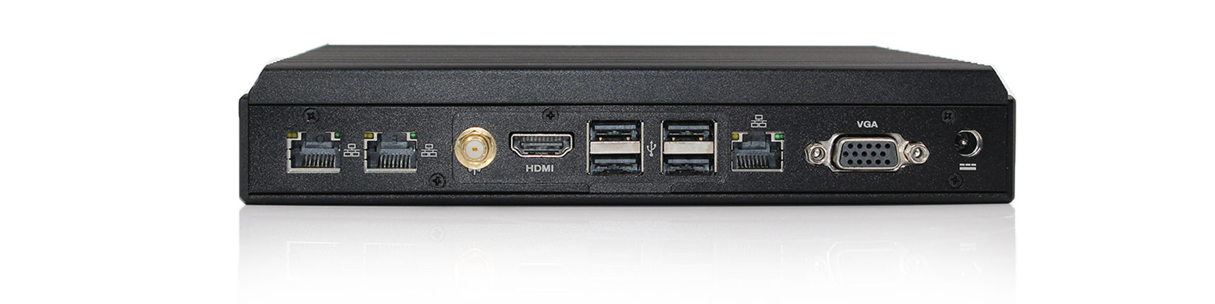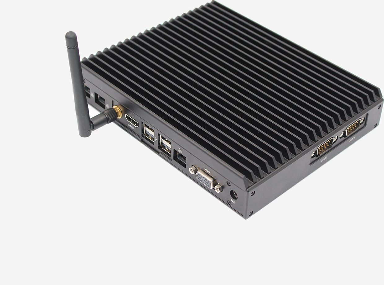 This embedded system has aluminum enclosure, and is designed to be fanless and compact, which makes it an ideal for space-sensitive applications. It has two configurations: 1 version has 1 × VGA and 1 × HDMI, and the other version 2 HDMI without affecting other I/O interfaces. It also has rich interfaces as 4 × USB2.0, 2 × USB3.0, 2 × COM(Either COM can be changed as RS232 or RS485), 1 DC_IN, Mic-in and Line-out, catering to all the requirements in the market. This Bay Trail based system is designed for various application as, but not limited to, automation, network security, communication and transportation.