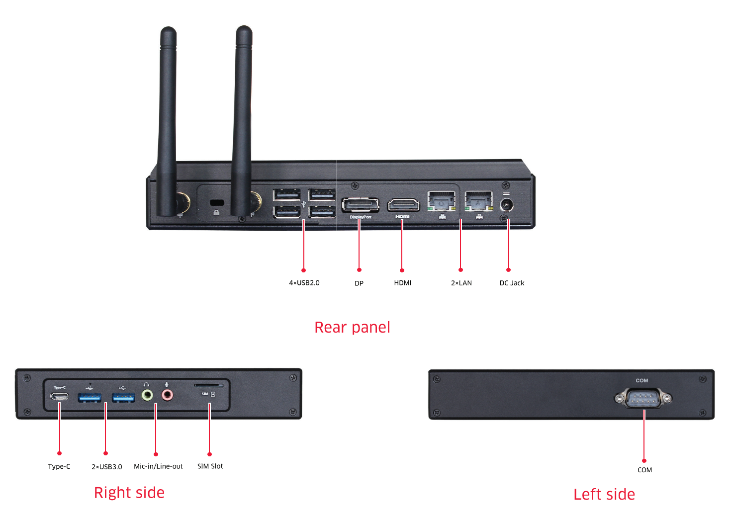 Rich I/O ports: 2×USB3.0, 4×USB2.0, 2×LAN, 1×COM, 1×HDMI, 1×DP, 1x Type-C