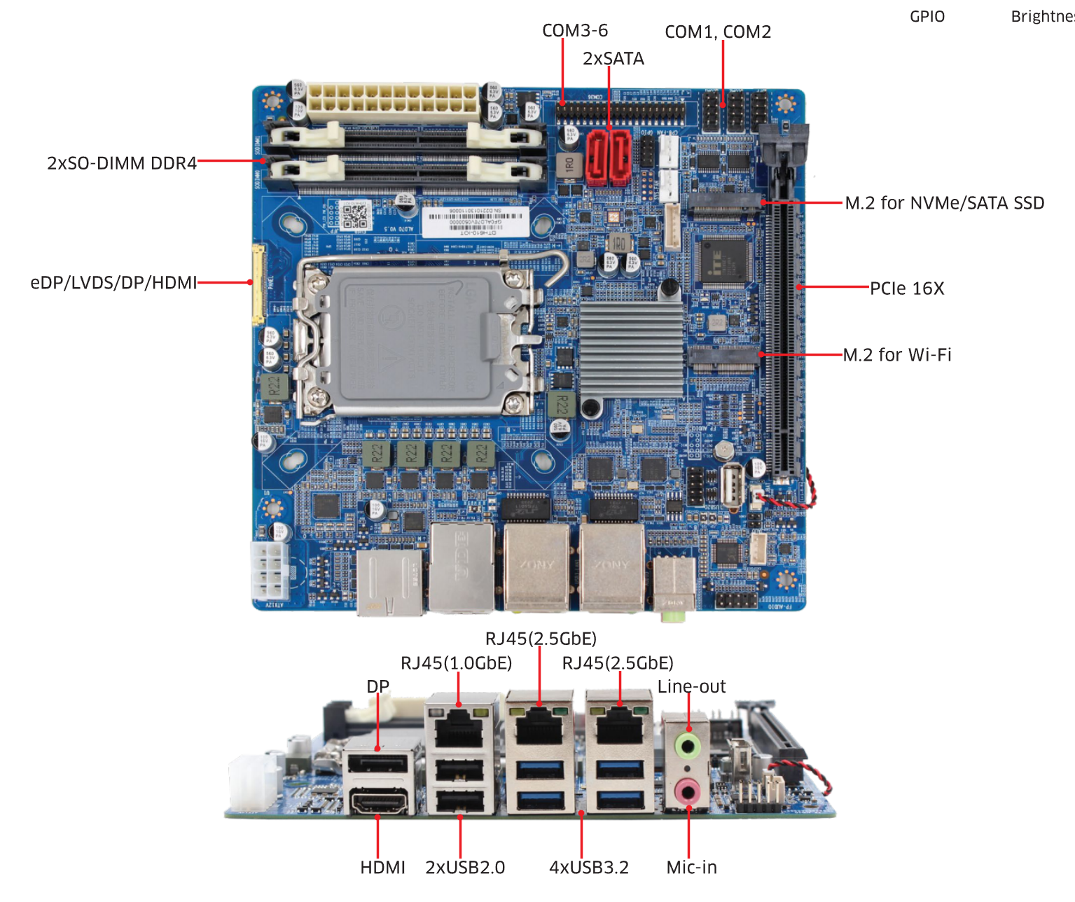 高速网络通信:配备一个Intel i219和两个i226以太网控制器,支持高达2.5GbE的高速网络通信,确保数据的快速传输和稳定连接。