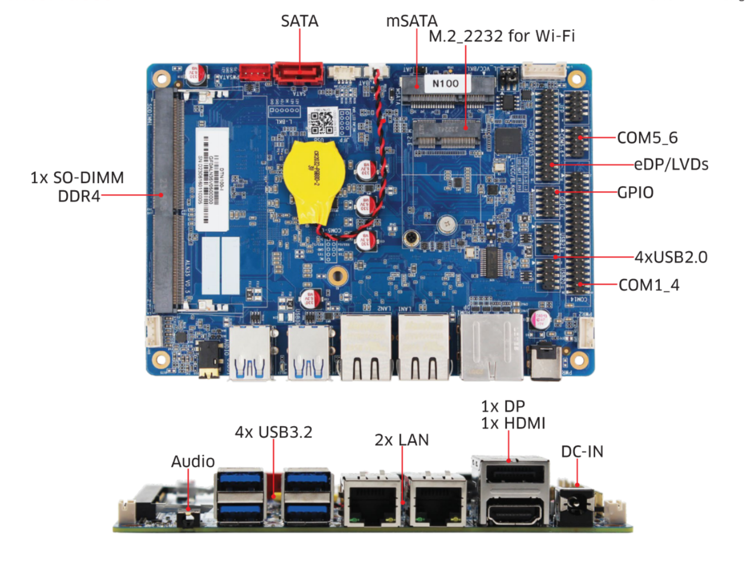 丰富的I/O接口与扩展能力:主板提供多种接口,包括HDMI、DP、eDP/LVDS、mSATA、SATA3.0以及1xM.2扩展槽,方便您连接各种设备和扩展功能。