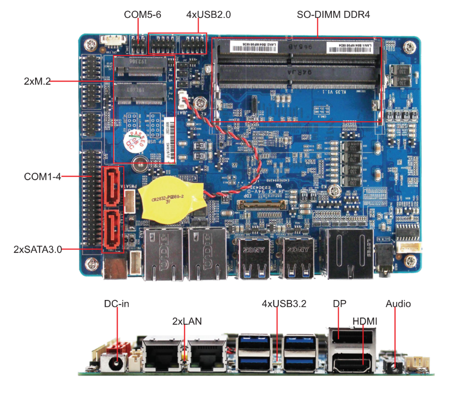 丰富扩展接口:支持M.2 WiFi和Mirco SIM扩展,以及多种I/O接口,如COM、USB3.2、USB2.0和GPIO,满足您各种外设连接和扩展需求。