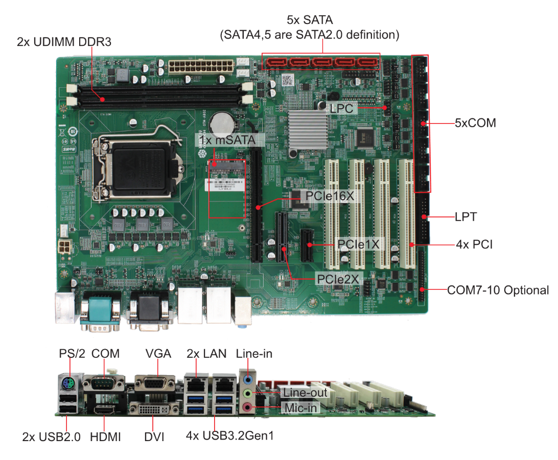 Expansion: PCIe1X, PCIe2X, PCIe16X, PCI